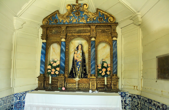 Já visitei diversas vezes este local, mas nunca consegui ver a Capela por dentro, contudo através do vidro da porta deixo-vos esta fotografia.