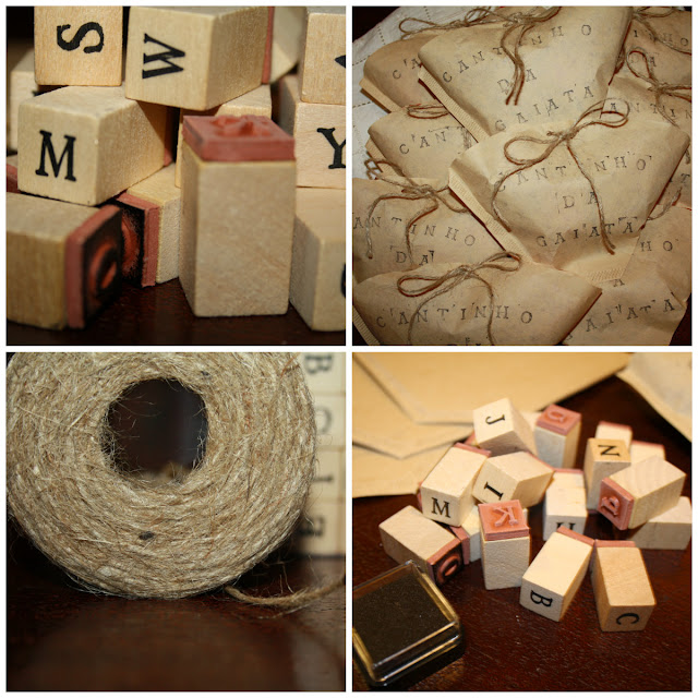Carimbei uns filtros para a máquina do café e dei um laço com fio sisal ! Ideia engraçada....