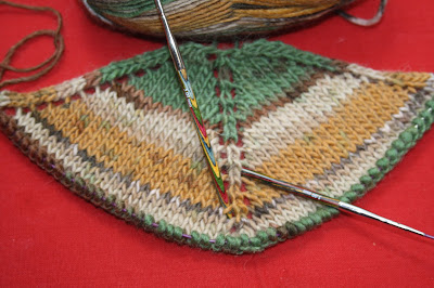 Traço verde para a esquerda:1 malha sem fazer, 1 meia e passa a malha não feita por cima