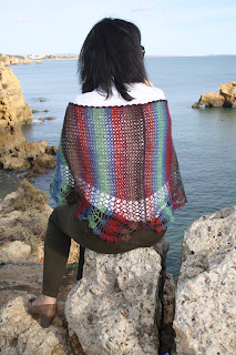 Há muito que a Mãe  me pedia  uma  capinha / xaile  para  colocar  pelas costas quando está em casa ou quando saímos para os nossos encontros  de  sábado à tarde  "Tricotar em Grupo" . Indecisa acerca da maneira como o havia de fazer, sem que fosse muito pesado e comprido, vi este desenho e resolvi avançar.
