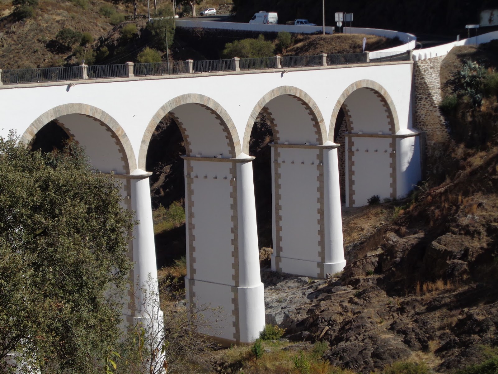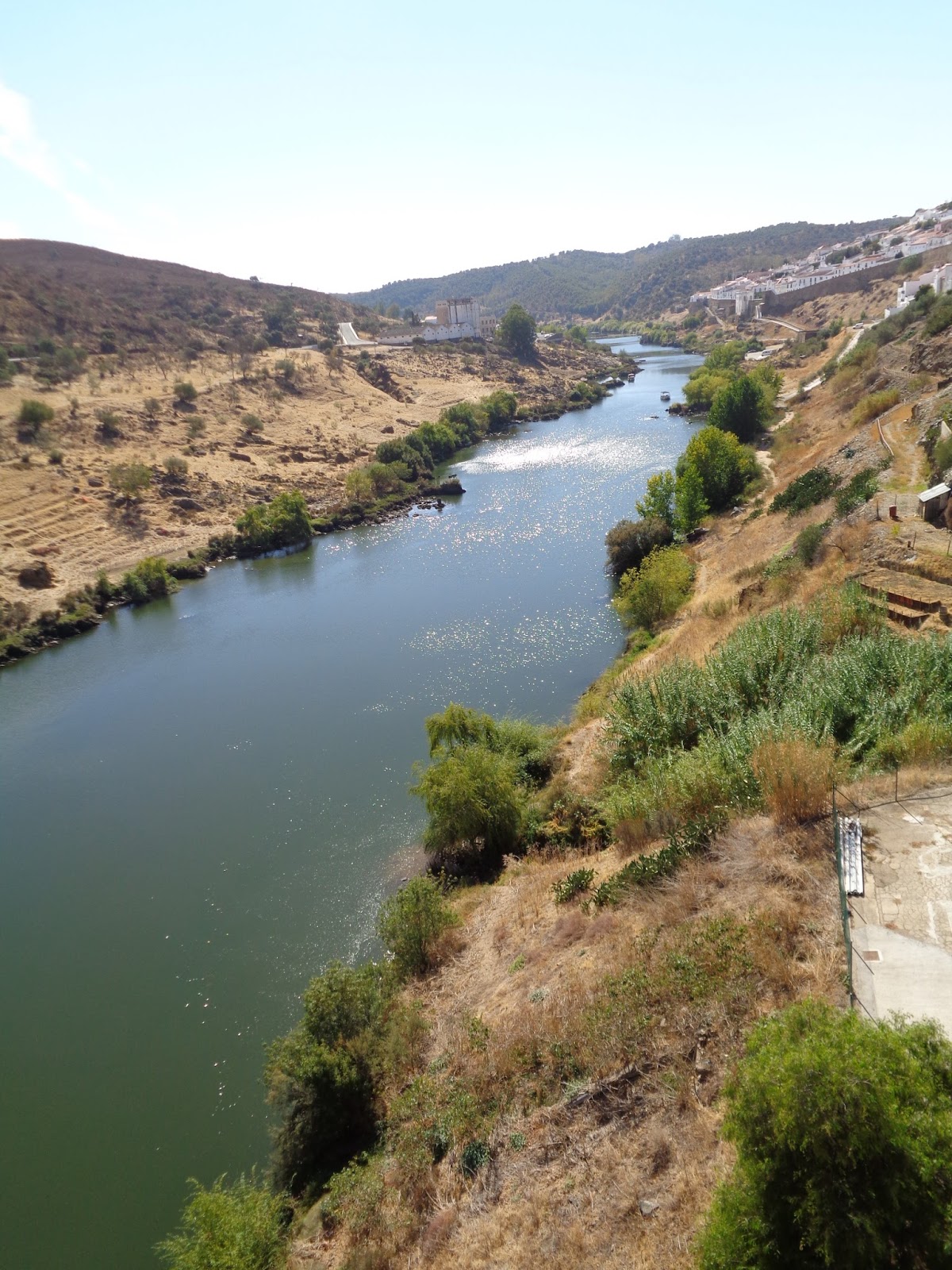 Ponte de Mértola também chamada Ponte Branca. A Vila encontra-se situada numa elevação na margem direita do Rio Guadiana.