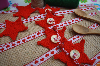 Elaborei umas estrelas simples em crochet, com Rosários 4 Regata.