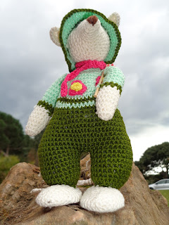 E porque sobrou um pouco de lã e para não acumular a tantas outras já existentes decidi fazer uma boina, vi esta e fiquei curiosa acerca da sua elaboração, nada difícil, mas levei mais tempo do que a fazer a capa pois não atinava com o tamanho, fiz algumas rectificações e lá segui caminho.
